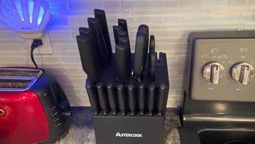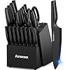Knife Set, Astercook 21 Pieces Knife Sets for Kitchen with Block, Dishwasher Safe Kitchen Knife Set with Built-in Sharpener, German Stainless Steel Black Knife Block Set