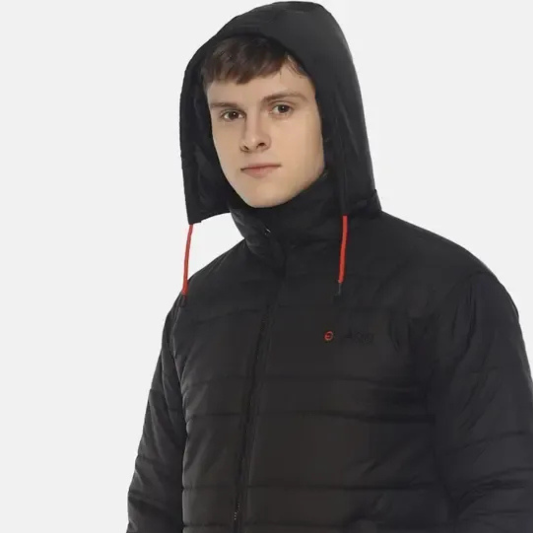 Bomper Jacket, Color: Black, Pattern: Solid, Material: Polyester (Outer Shell), Synthetic Filling (Padding), Closure Type: Front Zip Closure, Sleeve Type: Full Sleeves, Hood Type: Attached Hood with Drawstring, Fit Type: Regular Fit, Occasion: Casual, Winter Wear, Outdoor Activities, Care Instructions: Machine Wash Cold, Do Not Iron on Print, Do Not Bleach, Season: Winter